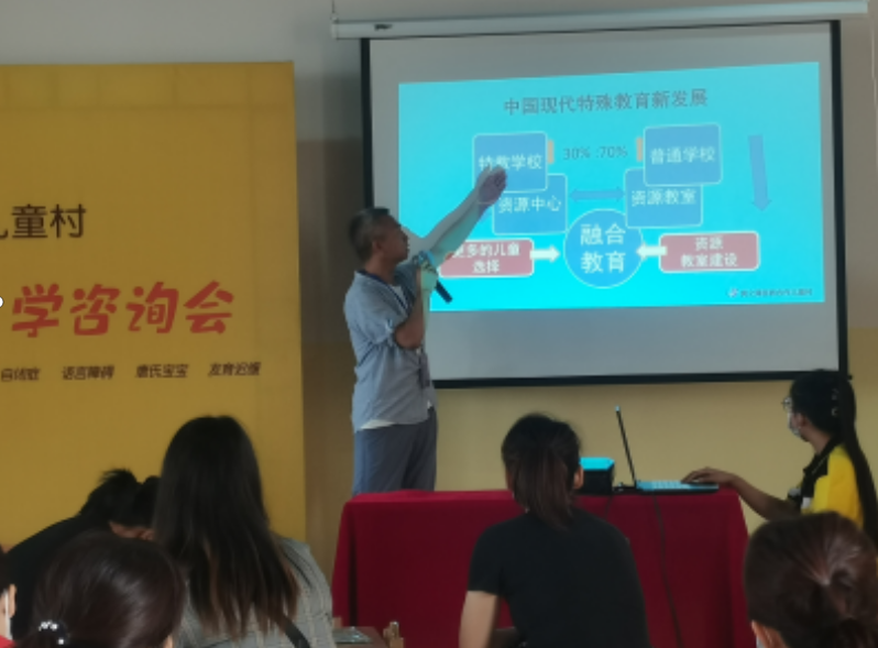 9点40分,咨询会活动正式开始。儿童村特教部特聘校长史校长、儿童村特聘省级儿童康复专家程主任、儿童村特教部专家顾问刘教授以及儿童村唐书记等人出席了本次大会。